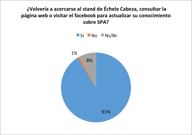 El 87% de las personas estiman que cuando hablan con pares de Échele Cabeza en el Estand Informativo, la página web o las redes sociales “les genera confianza y les consideran como alguien igual a usted que sabe del tema y le orienta bien”.