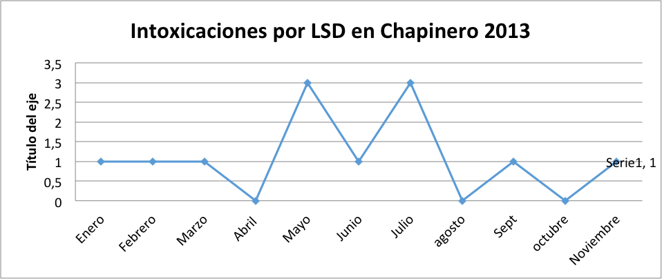 Si tenemos en cuenta que más del 32% de las personas encuestadas viven en el área de influencia del hospital de Chapinero, podemos indicar que el ingreso de intoxicación por LSD del primer semestre de 2013, equivalente a 1.5 por mes, se redujo en el segundo semestre de 2013, después de la publicación de la alerta, a 0.5 por mes.