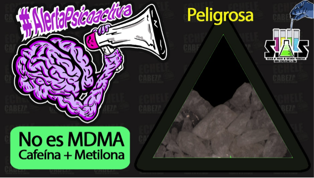 TLC: EX15: no presencia de MDMA. Mezcla entre cafeína y anfetamina. EX17: no presencia de MDMA. Mezcla entre cafeína y anfetamina. EX10: no presencia de MDMA. Mezcla entre metanfetamina y cafeína. EX01: no presencia de MDMA. Mezcla entre cafeína, anfetamina y butilona. Muestras Riesgosas: EX01, EX10, EX15 y EX17. |