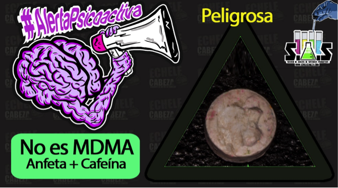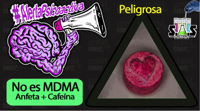 Por ejemplo, esta sustancia fue declarada como 2-CB por un usuario y en el análisis encontramos que se trataba de un éxtasis vendido como 2-CB.